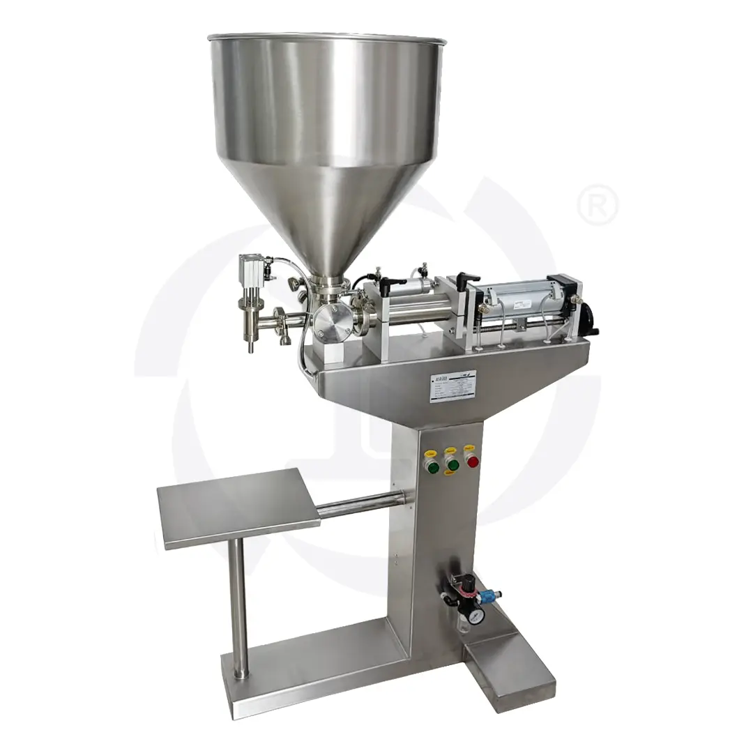 Maquina dosificadora de producto viscoso en acero inoxidable, cuenta con: ✓ Tolva de producto. ✓ Mesa de apoyo. ✓ Boquilla para dosificación. ✓ Regulador entrada de aire. ✓ Mando o pulsador. -