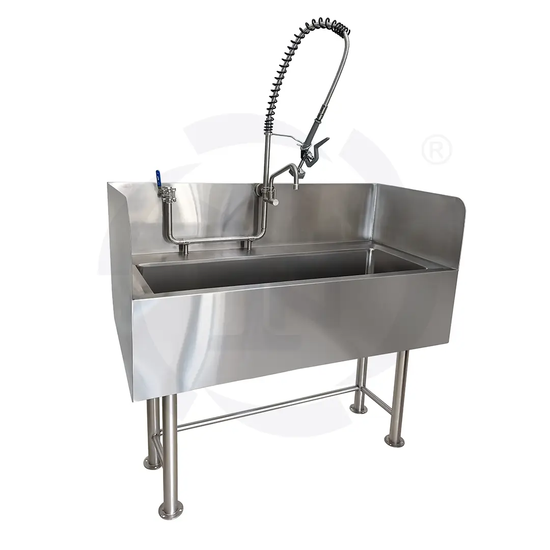 Lavamanos Doble fabricado en acero inoxidable, con sistema de accionamiento de pedal, óptimo para hospitales, restaurantes y lugares que requieran de una correcta higiene en sus procesos. -